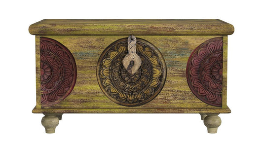 33" Brown and Green Wood Distressed Coffee Table