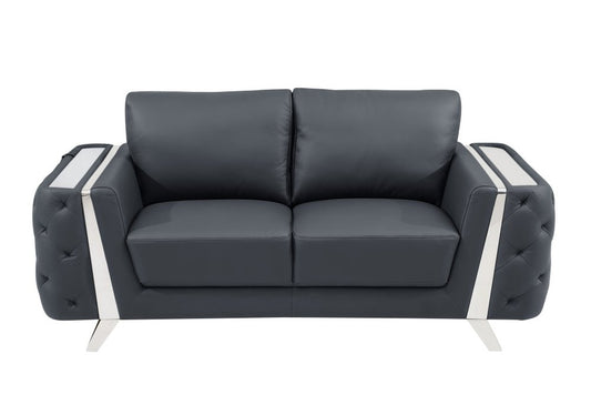 72" Dark Gray And Silver Genuine Leather Loveseat