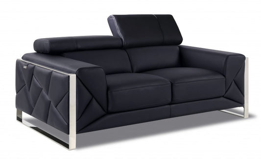 71" Navy Blue And Silver Genuine Leather Loveseat