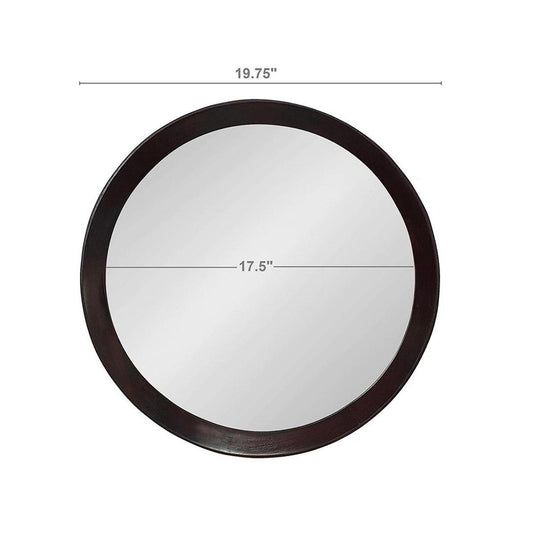 20" Dark Brown Round Wood Framed Accent Mirror
