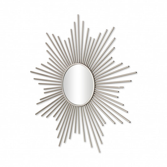 Striking Silver Metal Sunburst Design Wall Mirror