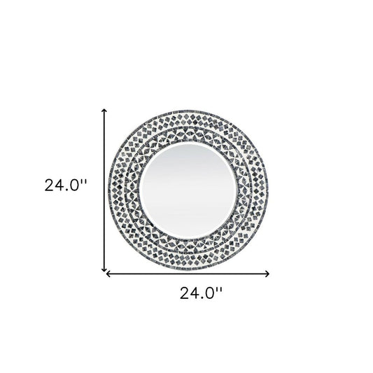 24" Black And White Round Wood And Shell Framed Accent Mirror
