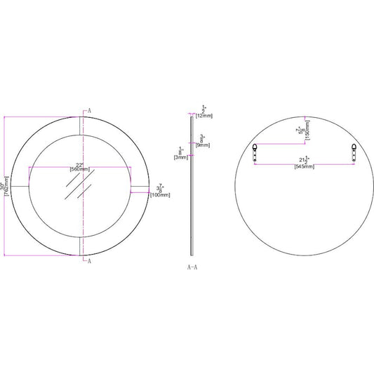 32" Black And Gold Round Wood And Metal Framed Accent Mirror