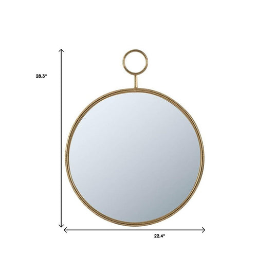 32" Brown And Gold Round Wood And Metal Framed Accent Mirror
