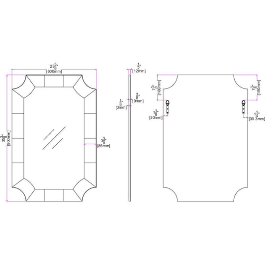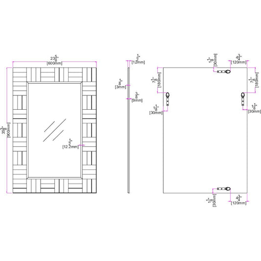35" Black Square Wood Framed Mounted Dresser Mirror