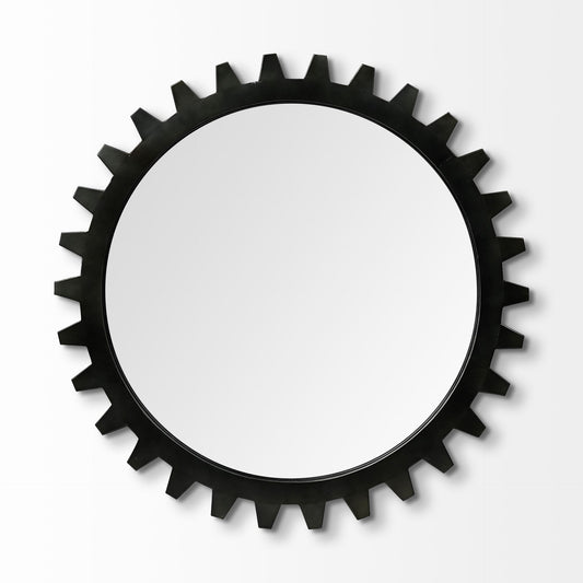 36" Black Square Iron Framed Antiqued Glass Accent Mirror