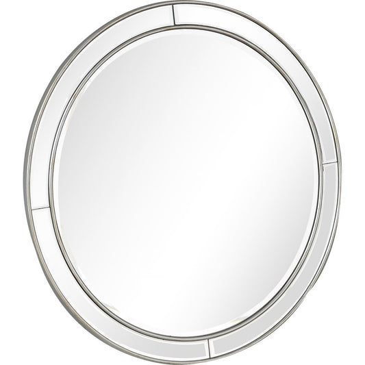 36" Black Round Iron Framed Antiqued Glass Accent Mirror