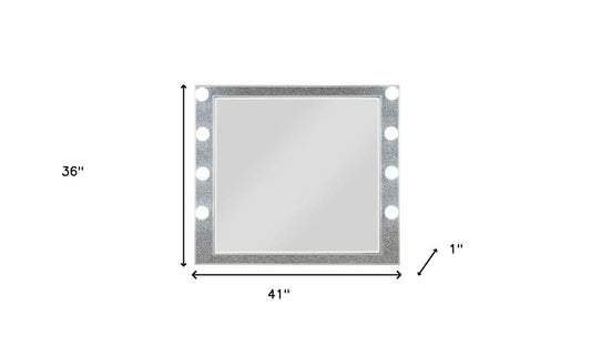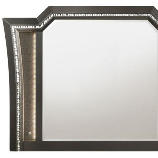 38" Gunmetal Lighted Abstract Wood Framed Mounted Dresser Mirror
