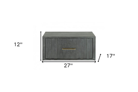 12" Gray Wood One Drawer Floating Nightstand
