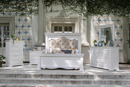 32" Antiqued White Two Drawers Mirrored Nightstand