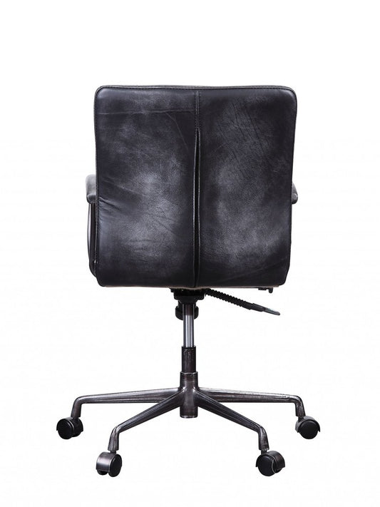 24" X 25" X 36" Vintage Black Top Grain Leather Aluminum Metal Upholstered (Seat) Casters Engineered Wood Executive Office Chair
