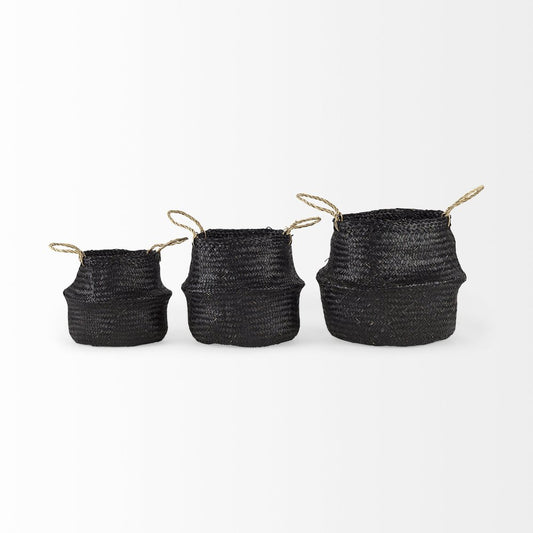 Set of Two Brown And Natural Cane And Solid Wood Box With Lid