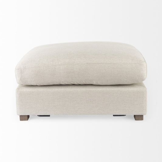 38" Cream Wool and Brown Ottoman