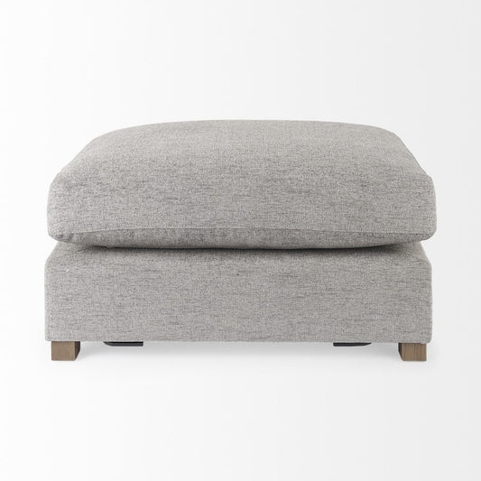 38" Gray Wool and Brown Ottoman