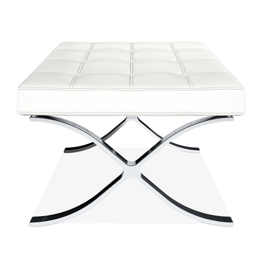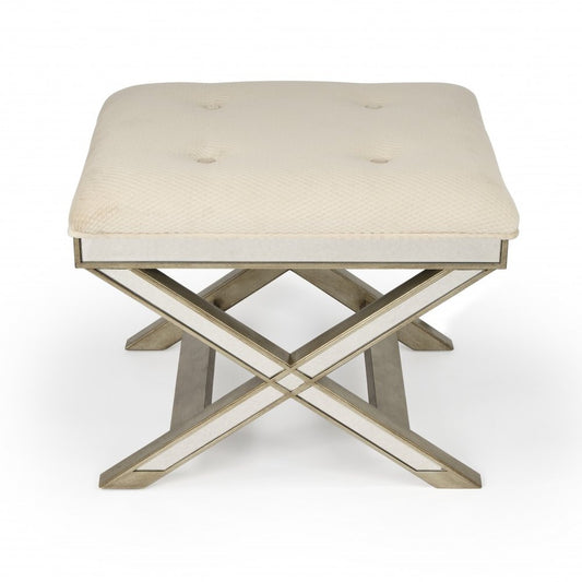 24" White Genuine Leather and Silver Tufted Footstool Ottoman