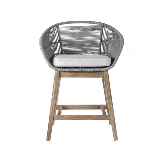 43" Light Gray Solid Wood Low back Outdoor Bar Height chair with Footrest