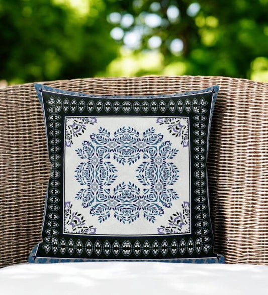 20" X 20" Black Zippered Southwestern Indoor Outdoor Throw Pillow