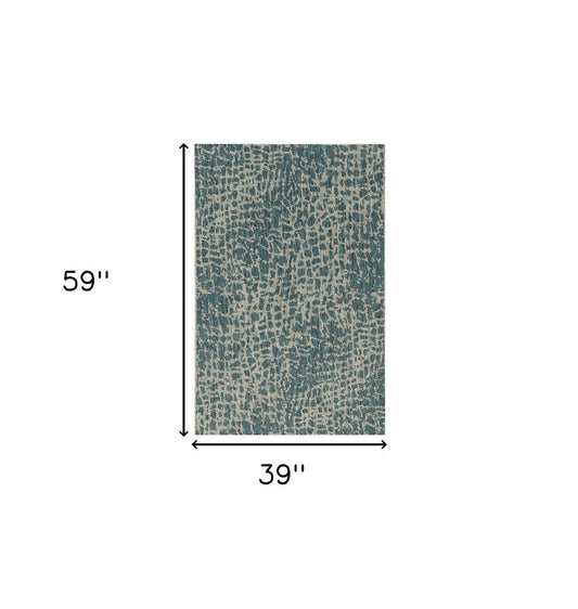 5' X 8' Teal Blue Abstract Indoor Outdoor Area Rug