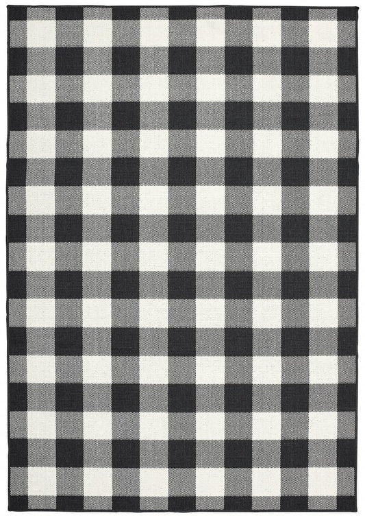 2' X 4' Black and Ivory Indoor Outdoor Area Rug