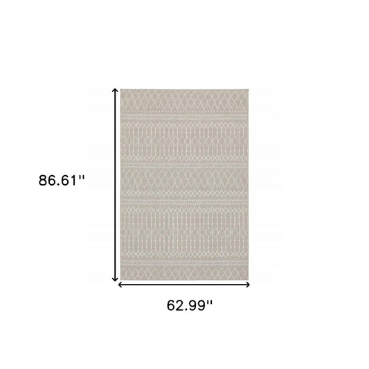 5' X 7' Gray Geometric Stain Resistant Indoor Outdoor Area Rug