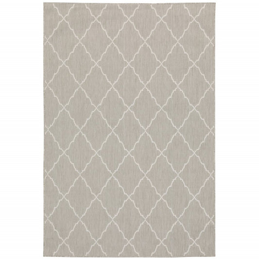 10' X 13' Gray Geometric Stain Resistant Indoor Outdoor Area Rug
