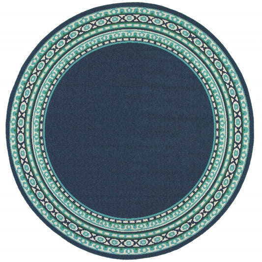 8' X 8' Blue And Green Round Indoor Outdoor Area Rug