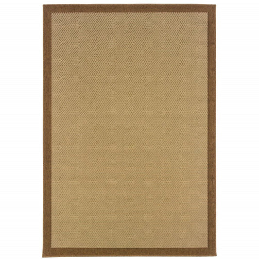 7' X 10' Beige and Black Geometric Stain Resistant Indoor Outdoor Area Rug