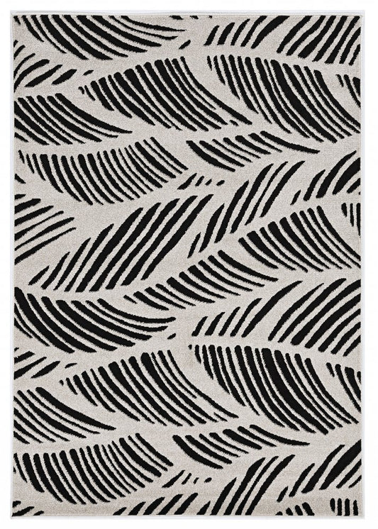 5' X 8' Black And White Abstract Indoor Outdoor Area Rug