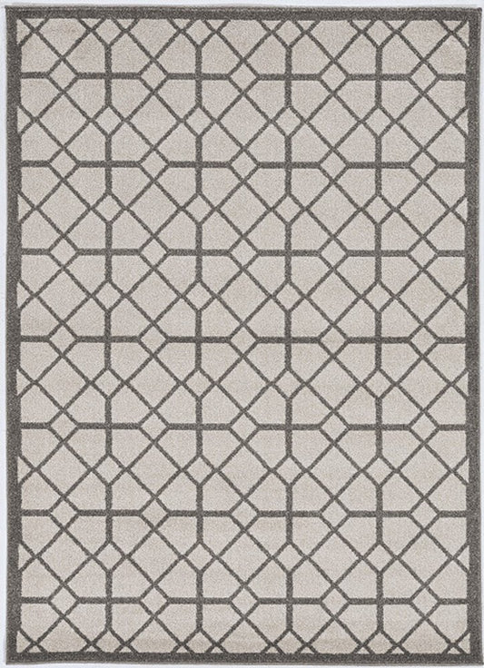 5' X 7' Gray and Ivory Geometric Stain Resistant Indoor Outdoor Area Rug