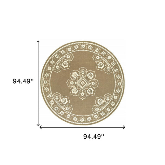 8' X 8' Tan Round Oriental Stain Resistant Indoor Outdoor Area Rug