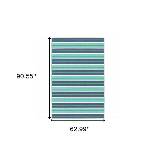 5' X 8' Blue and Green Geometric Stain Resistant Indoor Outdoor Area Rug