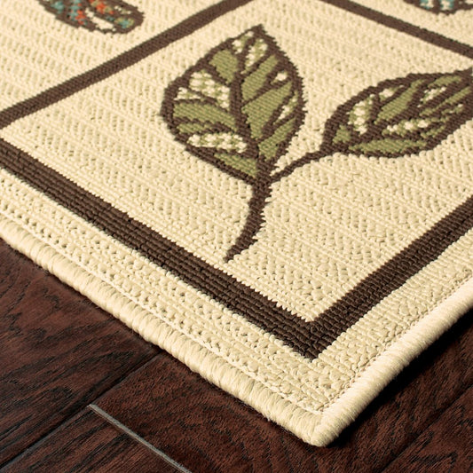 2' X 4' Brown and Ivory Floral Stain Resistant Indoor Outdoor Area Rug