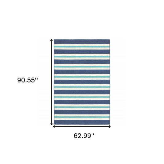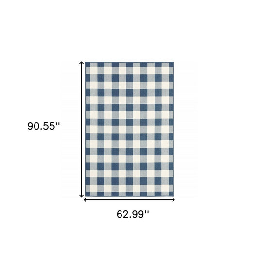5' X 8' Blue and Ivory Geometric Stain Resistant Indoor Outdoor Area Rug
