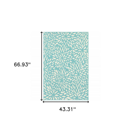 5' X 8' Blue and Ivory Floral Stain Resistant Indoor Outdoor Area Rug