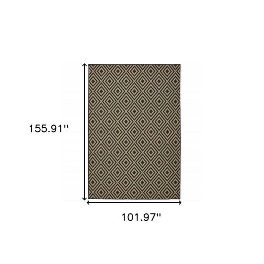 9' X 13' Black and Tan Geometric Stain Resistant Indoor Outdoor Area Rug