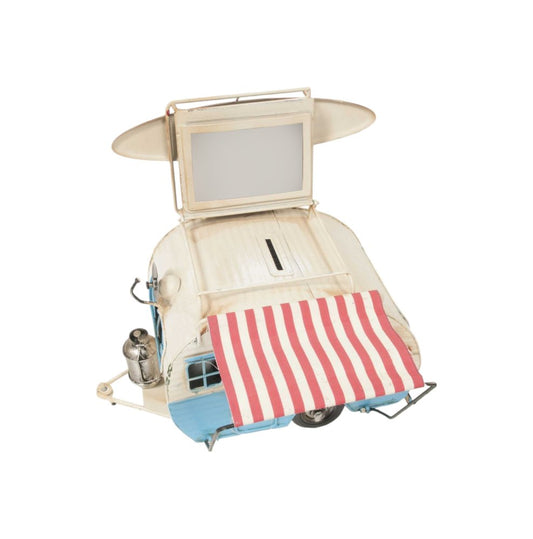 3.5" X 2.5" Blue And White Distressed Metal Tabletop Picture Frame