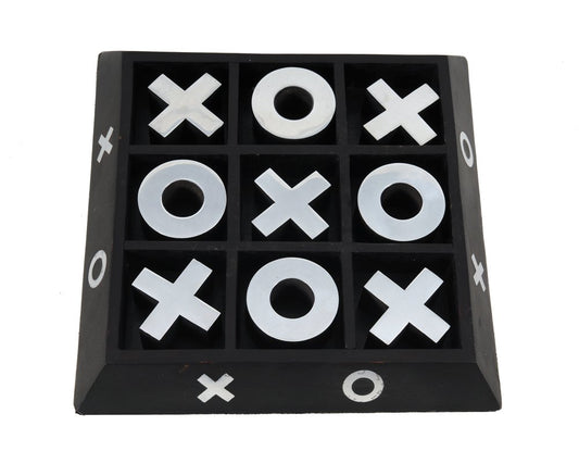 Nickel And Dark Wood Tic Tac Toe Game Sculpture