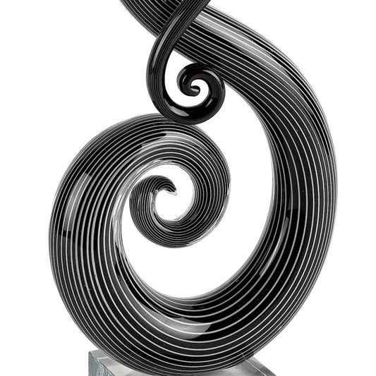 12" Black and White Murano Glass Modern Abstract Tabletop Sculpture