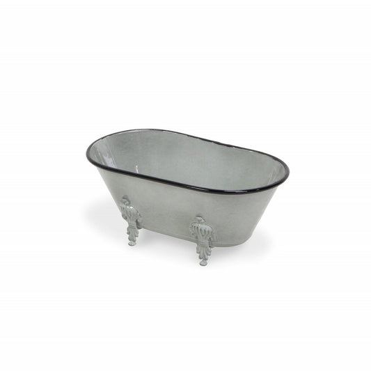 5" Gray Metal Hand Painted Decorative Tub Tabletop Sculpture