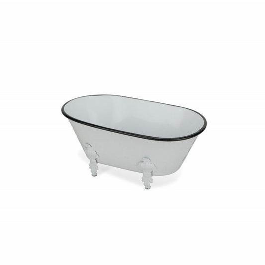 5" White Metal Hand Painted Decorative Tub Tabletop Sculpture