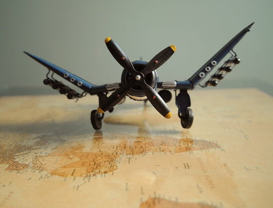 6" Grey Mustang Metal Hand Painted Decorative Airplane