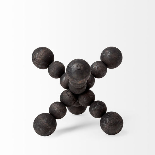8" Black Solid Wood Hand Painted Tabletop Sculpture