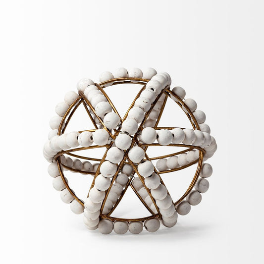 9" Off White Beaded Wooden Decorative Jack Tabletop Sculpture