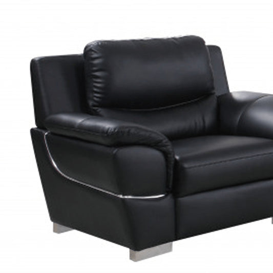 Three Piece Black Italian Leather Five Person Seating Set