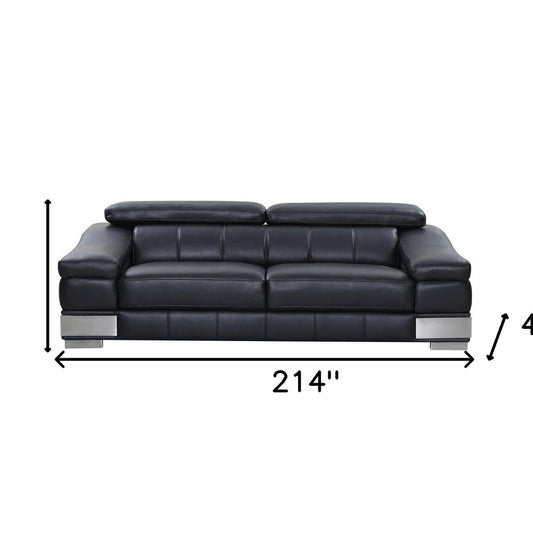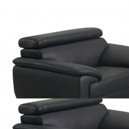 Three Piece Indoor Black Italian Leather Six Person Seating Set