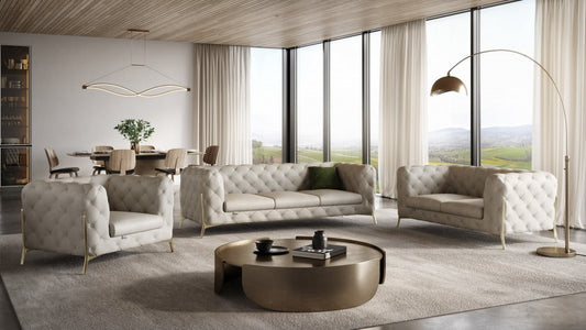 Three Piece Indoor Beige Velvet Six Person Seating Set