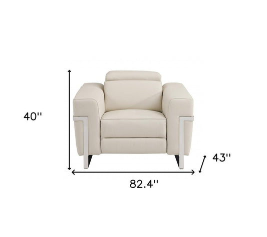 Three Piece Indoor Beige Genuine Leather Five Person Seating Set