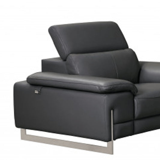 Three Piece Indoor Dark Gray Italian Leather Five Person Seating Set