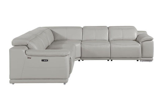 Light Gray Italian Leather Power Reclining U Shaped Six Piece Corner Sectional With Console