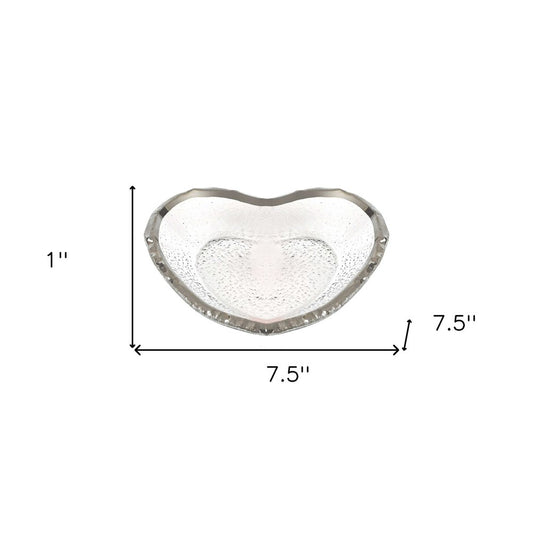 8" Mouth Blown Seeded Glass Heart Plate with Silver Rim